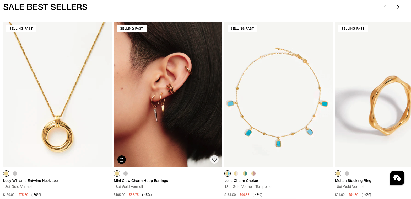 In collaboration with fashion influencer Lucy Williams, this collection offers a blend of vintage-inspired and modern designs. Discover beautiful gold necklaces, hoop earrings, and more that reflect Lucy’s signature style.