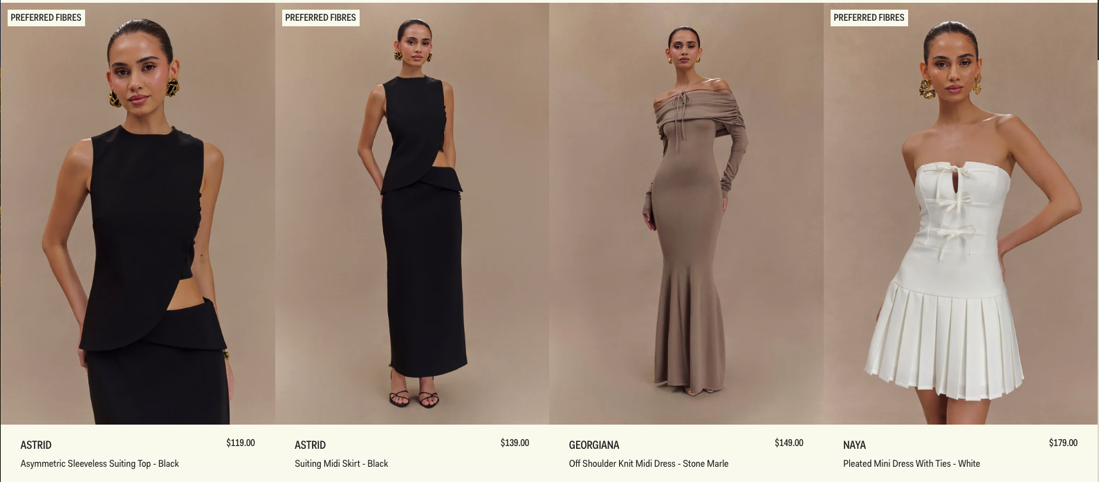 Trendy and Unique Designs: Meshki Australia delivers the latest trends with a fresh perspective, offering pieces that make you stand out. From body-hugging dresses to stylish outerwear, each piece is designed to enhance your look with contemporary style and flair.