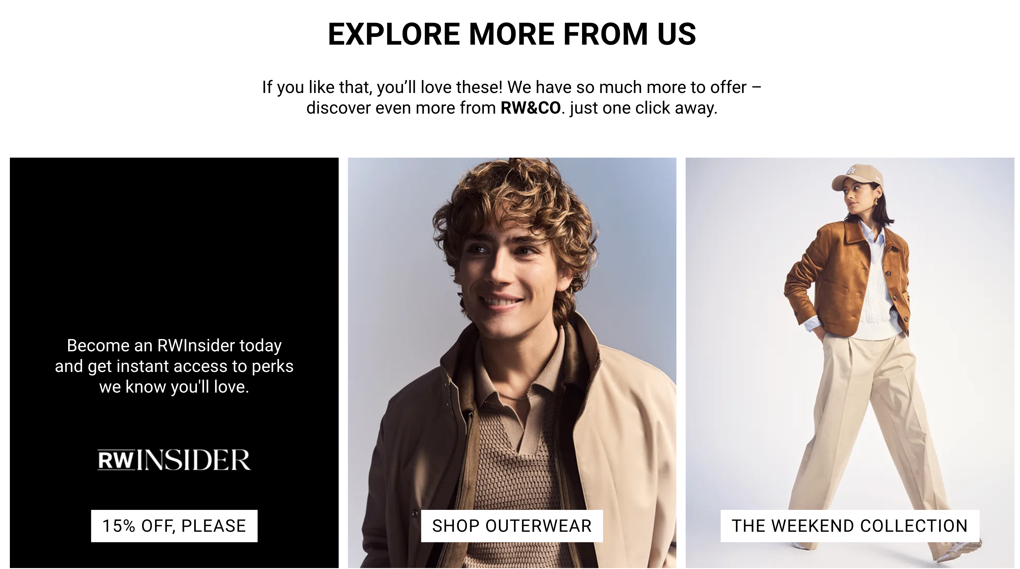 Upgrade your wardrobe with RW&CO., where fashion meets functionality. Whether you’re shopping for work attire or looking for that perfect outfit for a night out, RW&CO. has something to suit every need. Visit RW&CO. today and discover the perfect pieces for your wardrobe!